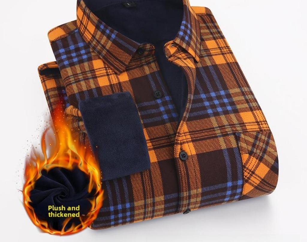 Pánská červená kostkovaná košile business casual s fleecovou podšívkou na podzim a zimu