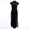 Léto 2025 Černé Retro Šaty Čchi-pao: Elegantní, Slim Fit s rozparky