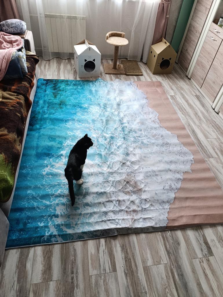 Byl srolovaný, doufám, že se narovná. Byl skvěle zabalený, sotva jsem ho rozbalila). Barvy jsou syté, ale na displeji telefonu vypadal o něco jasněji.. Neklouzavým bych ho nenazvala, klouže po podlaze