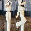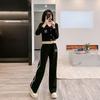 Dámský podzimní 2024 kardigan s kapucí a široké kalhoty dvoudílný stylový set