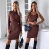 Módní dámský podzimní top s dlouhým rukávem a žebrováním, tílkové šaty