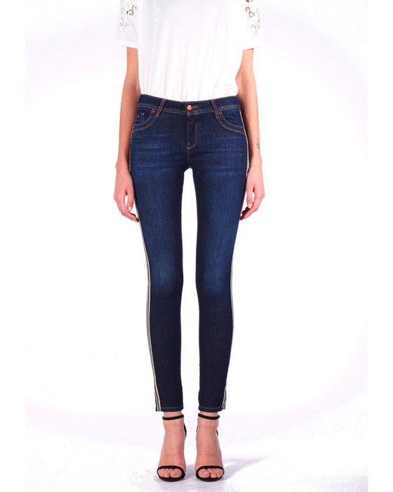Dámské džíny - Kaporal - Satin Klass - Slim - Modré - Seprané s bočním pruhem