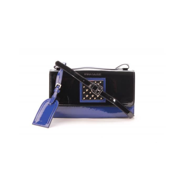 Pochette - Thierry Mugler - Lys 4 - Noir/Bleu électrique - Effet vernis - Porté bandoulière