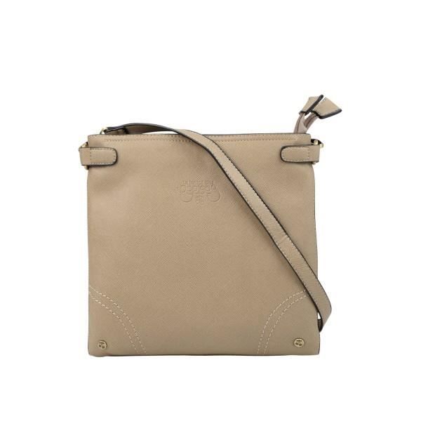 Sac Bandoulière - LE TEMPS DES CERISES - Atlantis 4 - Taupe - Effet cuir saffiano - 3 compartiments zippés
