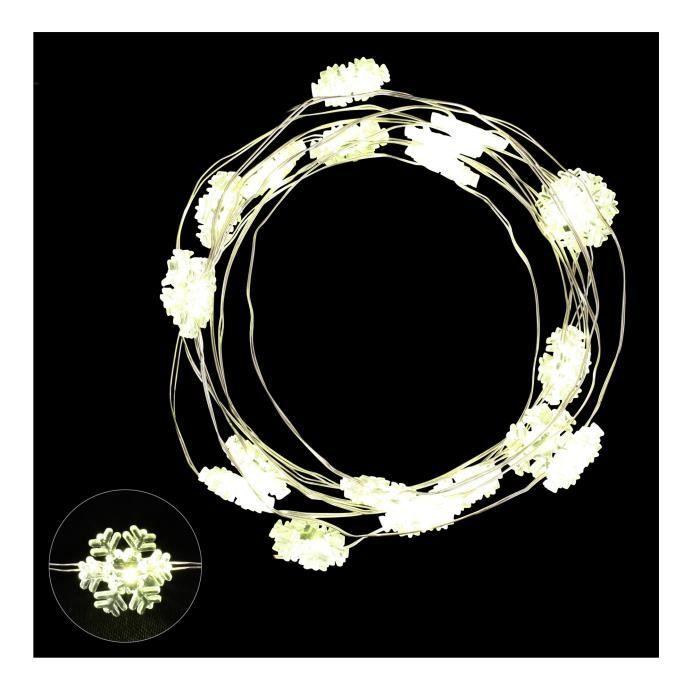 Guirlande de Noël - Déco flocons - 20 LED blanc froid fil cuivre - L 1,9 m - Piles