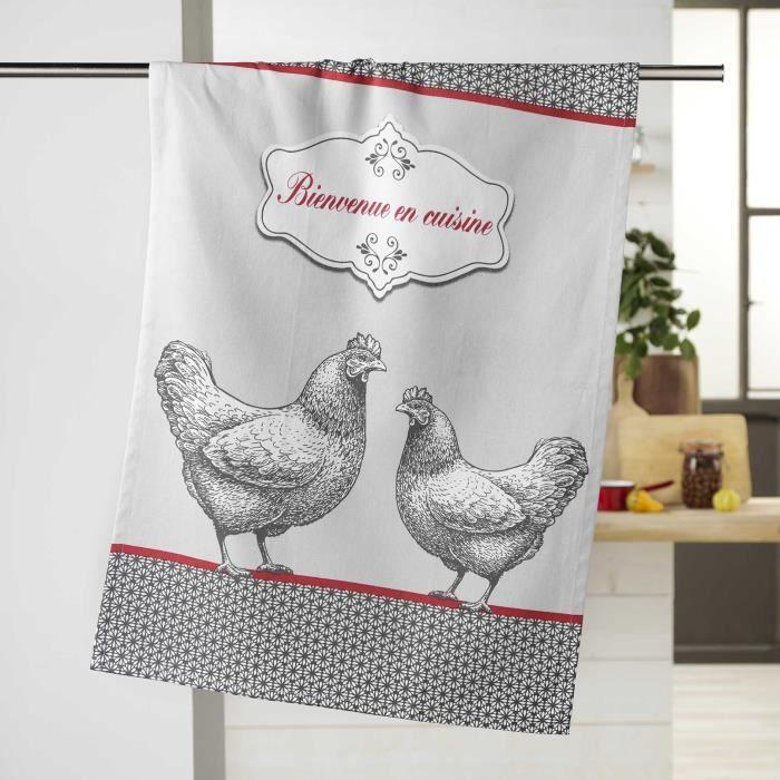 Torchon de cuisine - Bienvenue en cuisine - 50 x 70 cm - 100% coton - Certification Oeko-Tex®