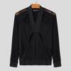 INCERUN Pánské topy a trička s dlouhým rukávem, výstřihem, kříženým patchworkem a netylovou vsadkou