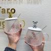 Silver Small Bear Coffee Cup with Lid Spoon Transparent Iceberg Ripple Glass Water Cup Juice Milk Heat-resistant Mocha Mugs