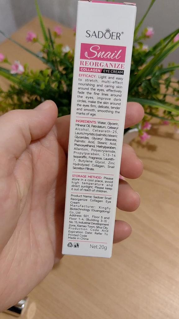 🛍️Šnekový zpevňující krém na oči🛍️ Hodnocení: ⭐⭐⭐⭐⭐ ✨Tento oční krém může pomoci proti tmavým kruhům, vráskám a nejednotnému tónu pleti. ✨Dokáže vyživovat a hydratovat pokožku a zároveň redukuje vzhled mladé a svěží pleti a dodává pleti pružnost ✨Je vhodný pro ty, kteří mají jemné vrásky kolem očí a obličeje. ✨Obsah výrobku je 20 gramů ✨ Snadno se používá. ✨Sada péče dorazila chráněná s rychlým doručením. Vřele doporučuji ke koupi🛍️