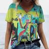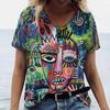 Letní dámské módní tričko Exagerovaný umělecký potisk Topy Trička Dámské Vintage Krátký rukáv Oblečení Dámské Denní Ležérní Streetwear