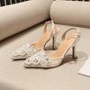 Francouzské špičaté vysoké podpatky Svatební boty Dámské Niche Temperament Perleťová Krajka Mesh Single Boty Tenký podpatek Bag Head Sandály
