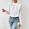 IHUASU Dámský podzimní zimní top s polovičním vysokým límcem, patchworkový, šifonový, s dlouhým rukávem