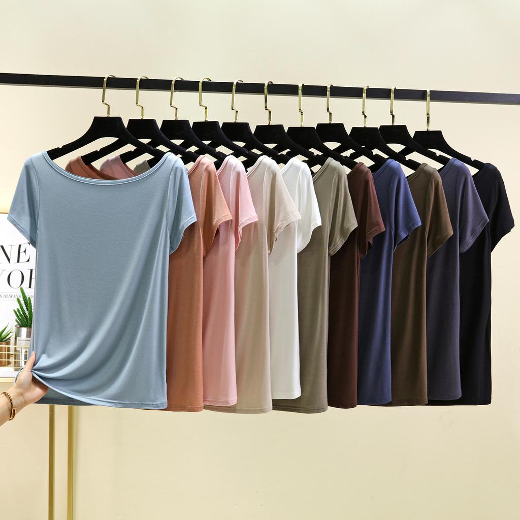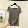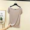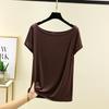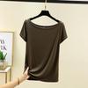 Dámské modální tričko s krátkým rukávem a odhalenými zády, lodičkovým výstřihem a odhalenými rameny, jednobarevné, volná základní vrstva, top pro větší velikosti, jednoduchá trička