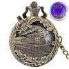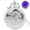 Světelné LED quartzové kapesní hodinky s dutou lokomotivou, steampunk quartzové FOB světelné hodinky pro muže a ženy