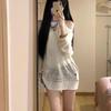 American Spicy Girl White Long Sleeved Hanging Neck Hollow Knitted Cover Shirt for Women's Spring and Summer Loose and Versatile Sun Protection Top