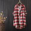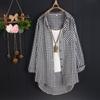 Dámské letní tenké kostkované dlouhé tričko s volnou elegantní halenkou v korejském stylu pro větší velikosti