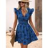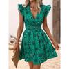 Women's Summer V-Neck Dress - Sexy Wrap Waist Floral Ruffle Sleeveless Bodycon Dress