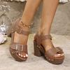 Summer Women Sandals Square High Heel Platform Flock Casual Rivet Pumps Peep Toe Female Elegant Ladies Shoes Zapatos De