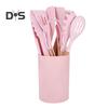 12dílná silikonová kuchyňská sada obracečka špachtle lžíce nepřilnavé tepelně odolné kuchyňské náčiní s dřevěnými rukojeťmi úložný kbelík pro veškeré nádobí