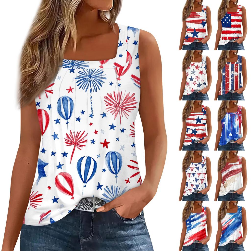 Dámský módní plisovaný top s potiskem a čtvercovým výstřihem