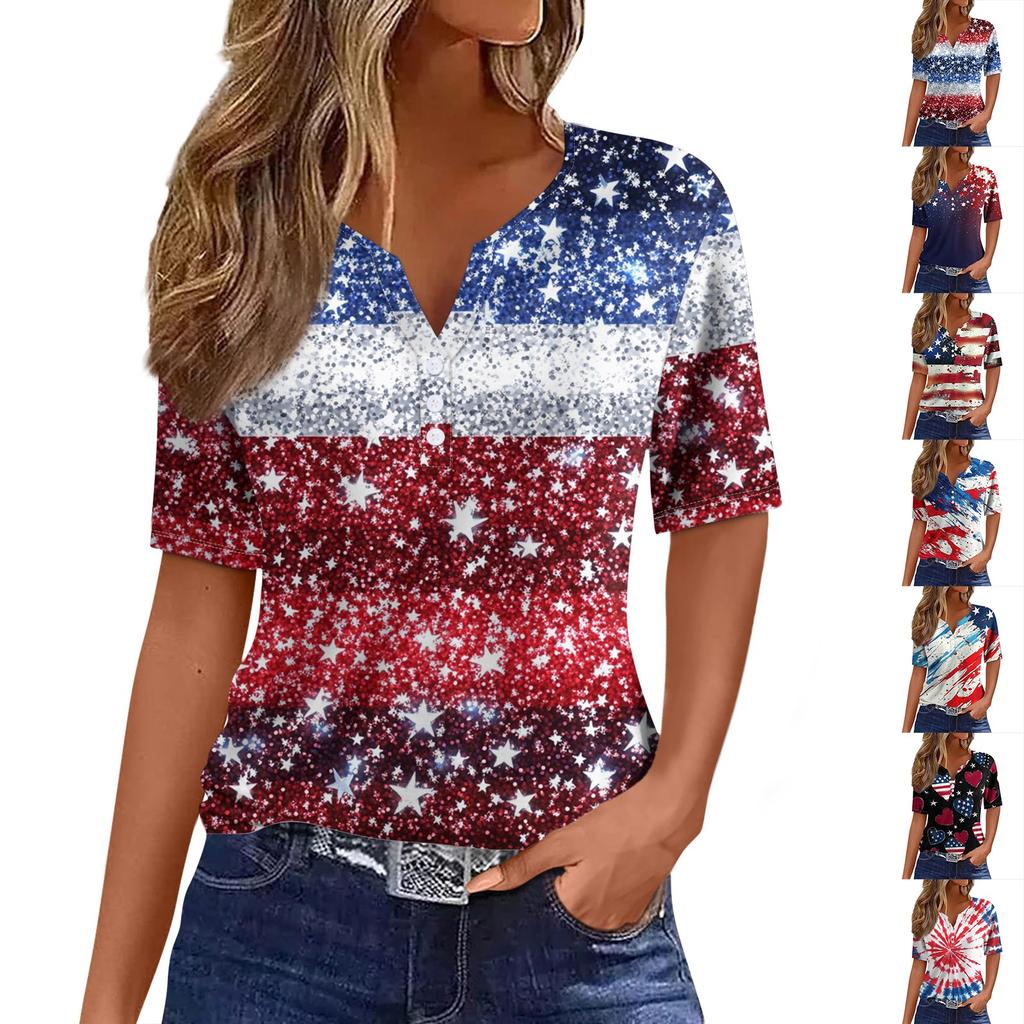 Dámské tričko Tričko Potisk knoflíku Krátký rukáv Denní víkend Móda Basic Top s výstřihem do V