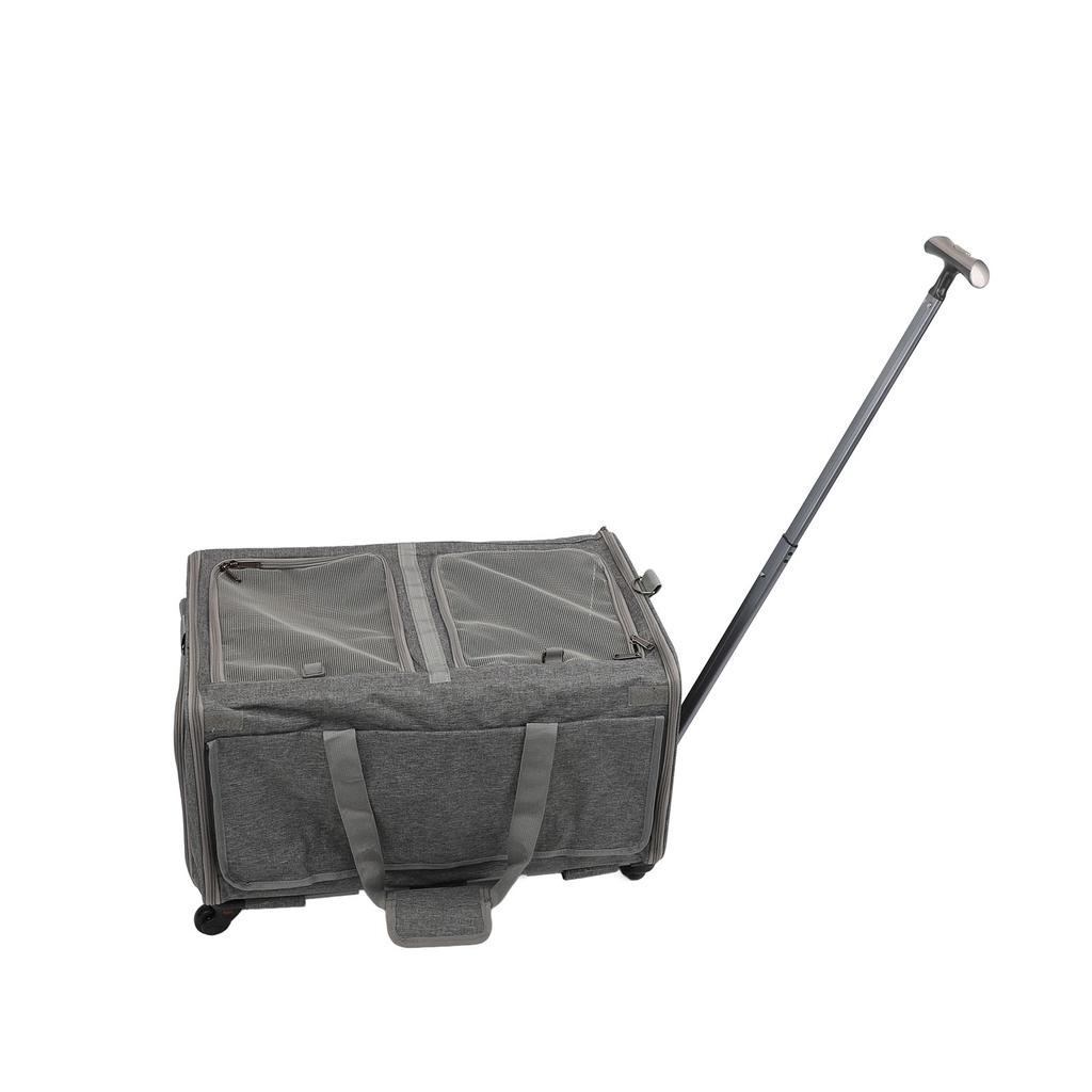 Pet Carrier with Wheels Double Compartment Portable Breathable Oxford Cloth Large Capacity Rolling