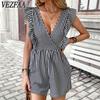VEZFAA Dámská móda Ležérní Léto Jaro Jednobarevný potisk Bez rukávů Výstřih do V Kalhoty s vysokým pasem Kombinézy a kombinézy