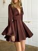 Dámské saténové mini šaty s dlouhým rukávem a hlubokým výstřihem do V krátké šaty s vysokým pasem splývavé šaty na klubovou koktejlovou párty