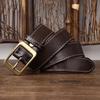 3.8 Cm Thickened Pure Cowhide Genuine Leather for Men's High Quality Jeans Brass Buckle Belts Cowboy Waistband Male Designer