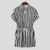 Pánské proužkované šortky móda ležérní hrací souprava s krátkým rukávem šortky se zapínáním na knoflíky klopa kombinéza se stahovací šňůrkou Streetwear XS-3XL