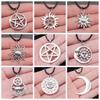Dárky pro narozeniny, náhrdelník s pentagramem, sluncem a měsícem, kožený řetízek 45 cm, umělecké potřeby, přívěsky na krk.