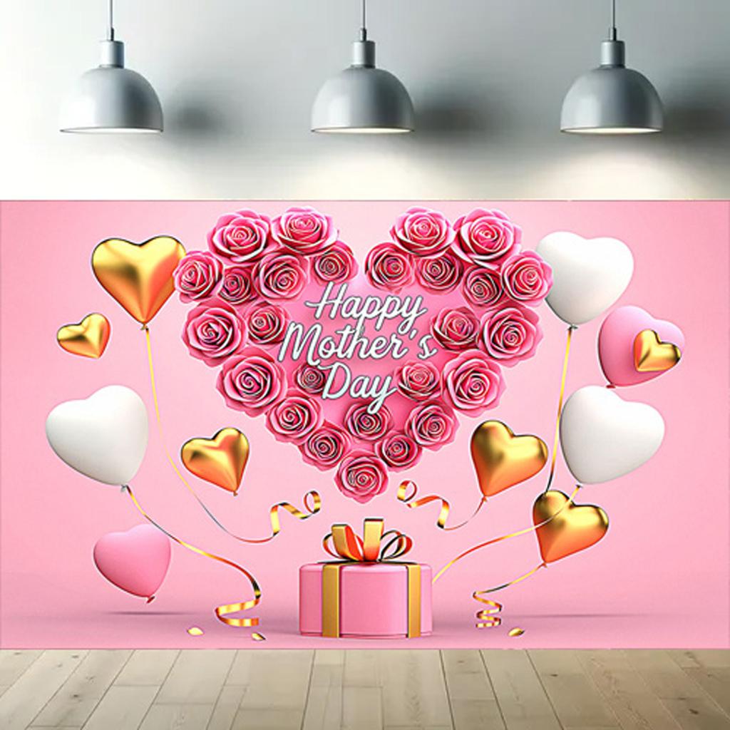 Happy Mothers Day Party Background Thanks Mother Flower Rose Heart Floral Pink Photography Backdrop Photo Studio Props