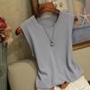 Women Summer Sleeveless O Neck Solid Color Knitted Causal Vest Top