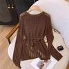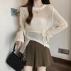 Hollow Out Knitted Women's Thin Cover Shirt Irregular Drawstring Medium Long Outer Sunscreen Top for Women