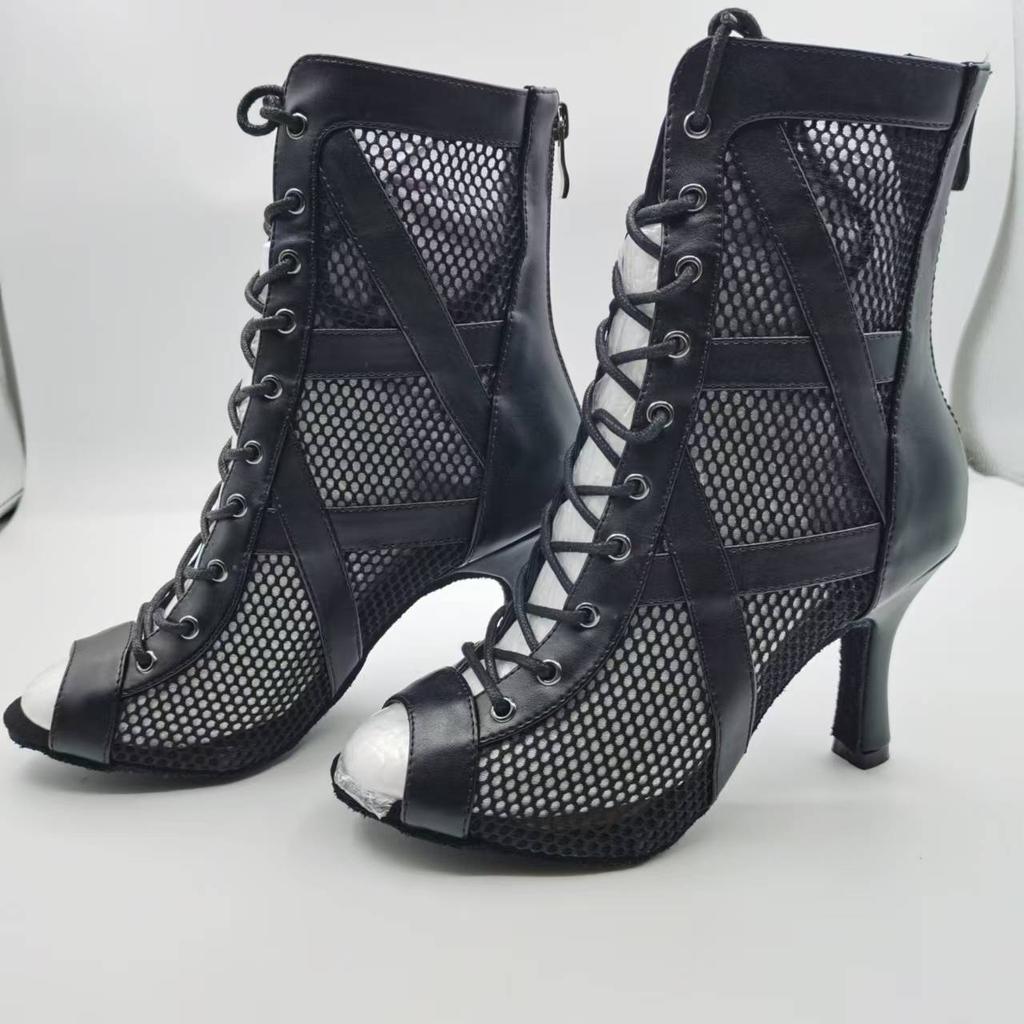 Women Black High Heels Party Lace-up Peep toe Boots Stilettos Jazz Dance Women's shoes Street Booties Big Size 46