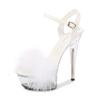Fashion Sandals Women Transparent Fluffy Ankle Buckle Stiletto High Heels Nightclub Runway Show Shoes