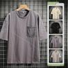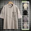 Letní pánské volné tričko s krátkým rukávem z čisté bavlny, ledového hedvábí, top s kulatým výstřihem a polovičními rukávy