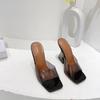Summer Women Slippers Fashion Sexy Square Head PVC Transparent Heel High Heels Temperament Party Shoes