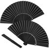 Černý skládací klasický vějíř s ruční klikou, hedvábná tkanina, žebra, kapesní čínský/španělský skládací vějíř na svatbu, párty, vystoupení, tanec, domov