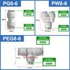 Pneumatické komponenty - Rychlospojka pro plynové potrubí - Černá PG/PW/PEG8-6/10-6 T-kus T-spojka pro plynové potrubí