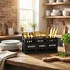 - 【Základní úložný box do kuchyně】:Tento organizér na farmu má čtyři přihrádky pro úhledné uložení různých kuchyňských nástrojů, jako jsou nože, obracečky, kleště, metličky, lžíce, škrabky, otvíráky na lahve, příbory, vidličky a hůlky.