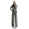 Kalhoty se širokými nohavicemi Dámské Podzimní a Zimní Nové S vysokým pasem Splývavé Úzké Měkké Voskové Ležérní Kalhoty s rovnými nohavicemi