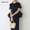 Korejská Móda Letní Dámská Streetwear Top Krátký O Krk Bílá Černá Vrstvené Krajka Volánky Patchwork Tričko Krátký Rukáv Ženský Dámské Tričko