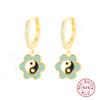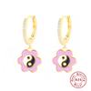 Fashion S925 Sterling Silver Colored Petals Dripping Oil Yin And Yang Gossip Flower Colored Earrings Earrings Earrings