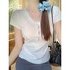 Dámský pletený svetr z ledového hedvábí, jaro léto, nový, úzký střih, tričko s krátkým rukávem, V-výstřihem, s trojrozměrným květinovým okrajem ve tvaru houby