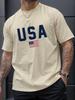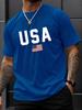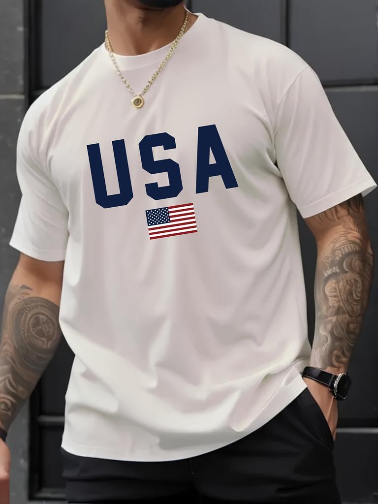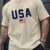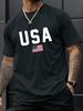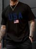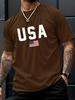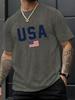 Pánské ležérní tričko s kulatým výstřihem a potiskem vlajky USA, pletenina, regular střih s krátkým rukávem