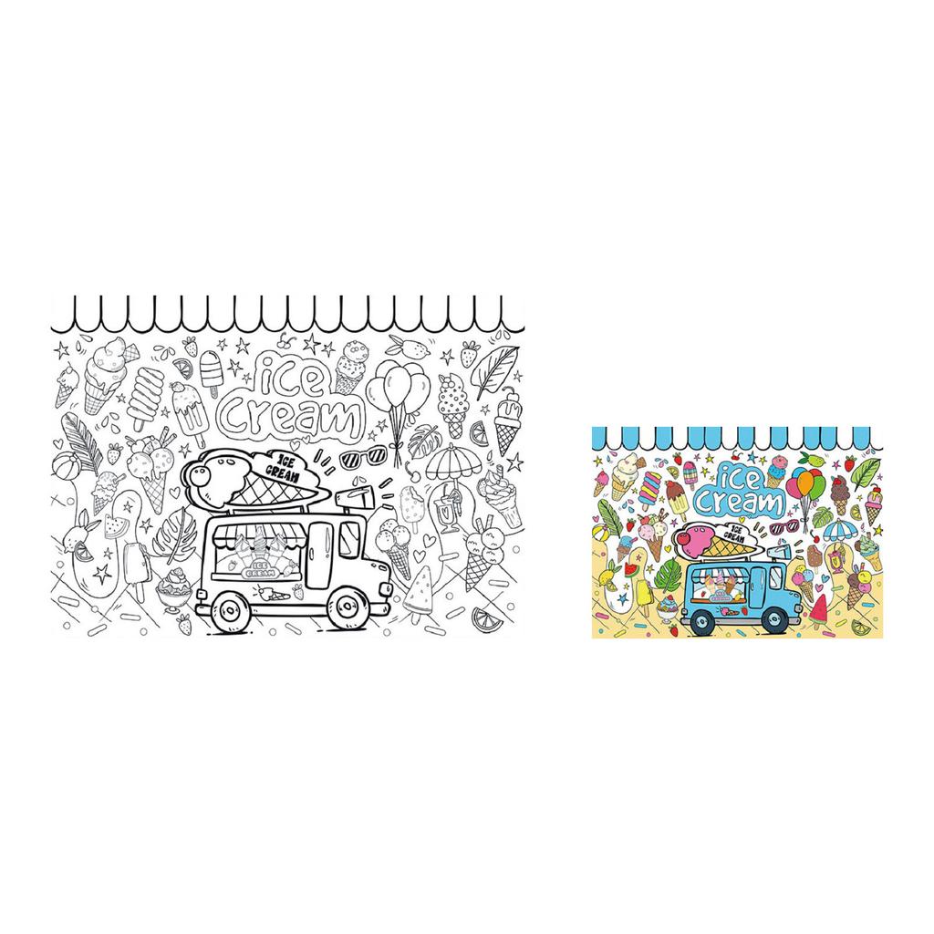 Paper Table Cloth For Coloring, Creative Children's Activities,Summer Party Children's Ice Cream Painting Coloring Poster, Excluding Paintbrushes,