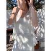 summer Lady sexy Hollow Out Mesh Pullover beach t-shirt Women's Knitted Sweaters See Through casual sleeveless irregular Tops