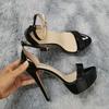 Nové Dámské Sandály Sexy hadí vzor Otevřená špička 14 cm Velké podpatky Lakovaná kůže Nighclub Party Svatební boty na platformě