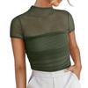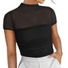 Dámský módní a ležérní dvouvrstvý síťovaný top s krátkým rukávem a vysokým výstřihem